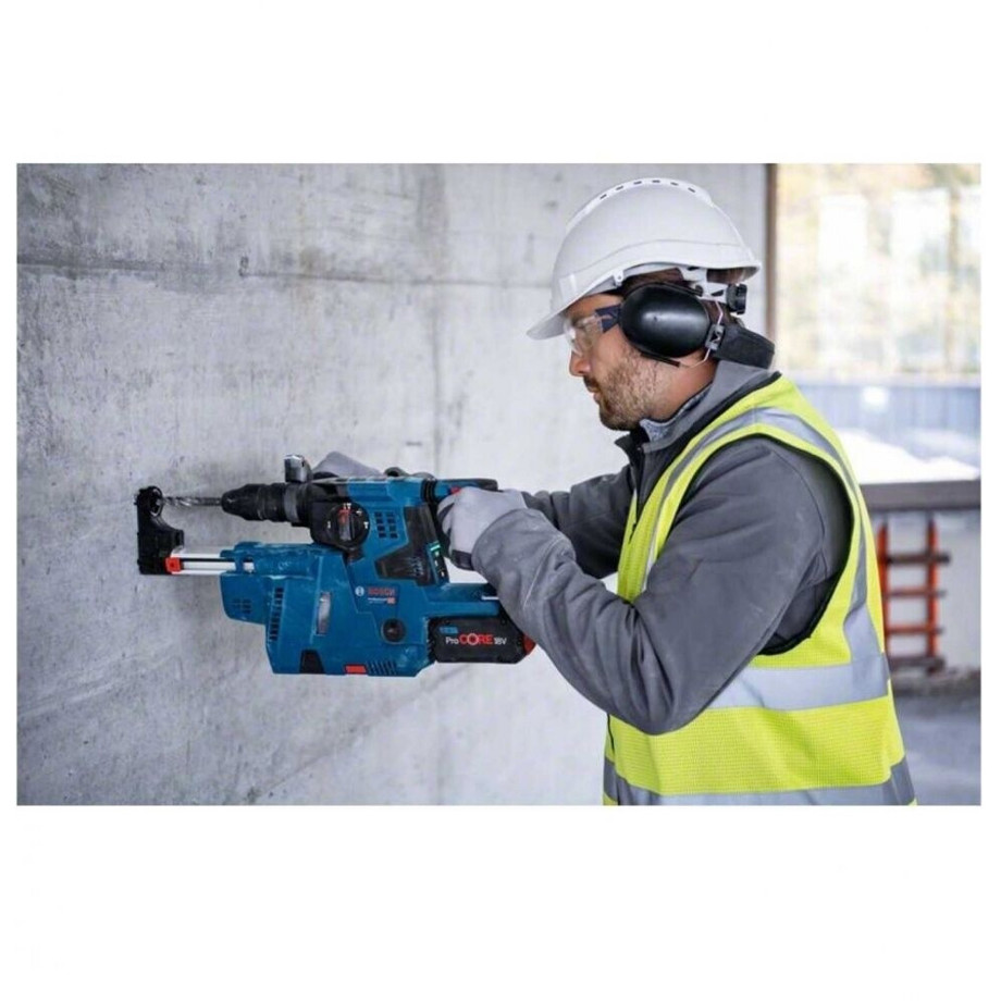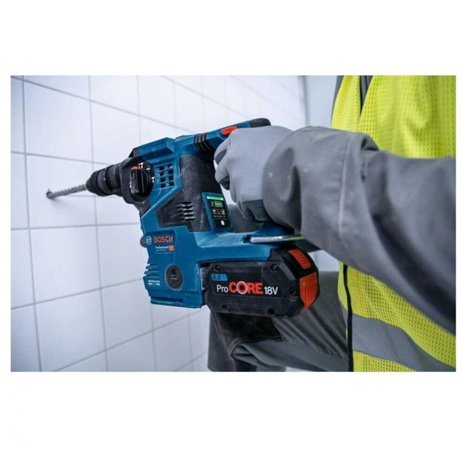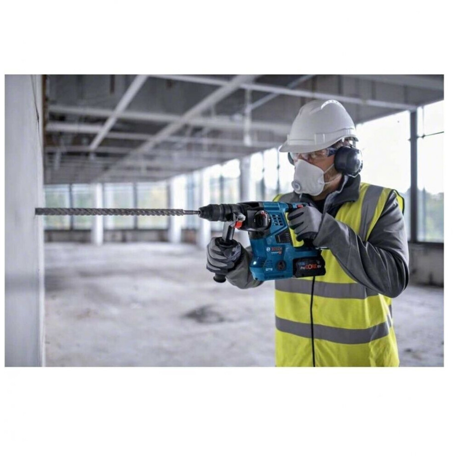 Der Bosch GBH 18V-28 CF wird von einem leistungsstarken 18 V Li-ion Akku versorgt und verfügt über einen bürstenlosen EC-Motor, der für eine längere Lebensdauer und verbesserte Effizienz sorgt. Die integrierte Anti-Vibrations-Technologie erhöht den Arbeitskomfort wesentlich. Zudem schützt das Sicherheitsmerkmal KickBack Control den Anwender bei plötzlichem Blockieren des Werkzeugs. Die bewährte SDS-Plus Werkzeugaufnahme gewährleistet einen schnellen und sicheren Werkzeugwechsel.