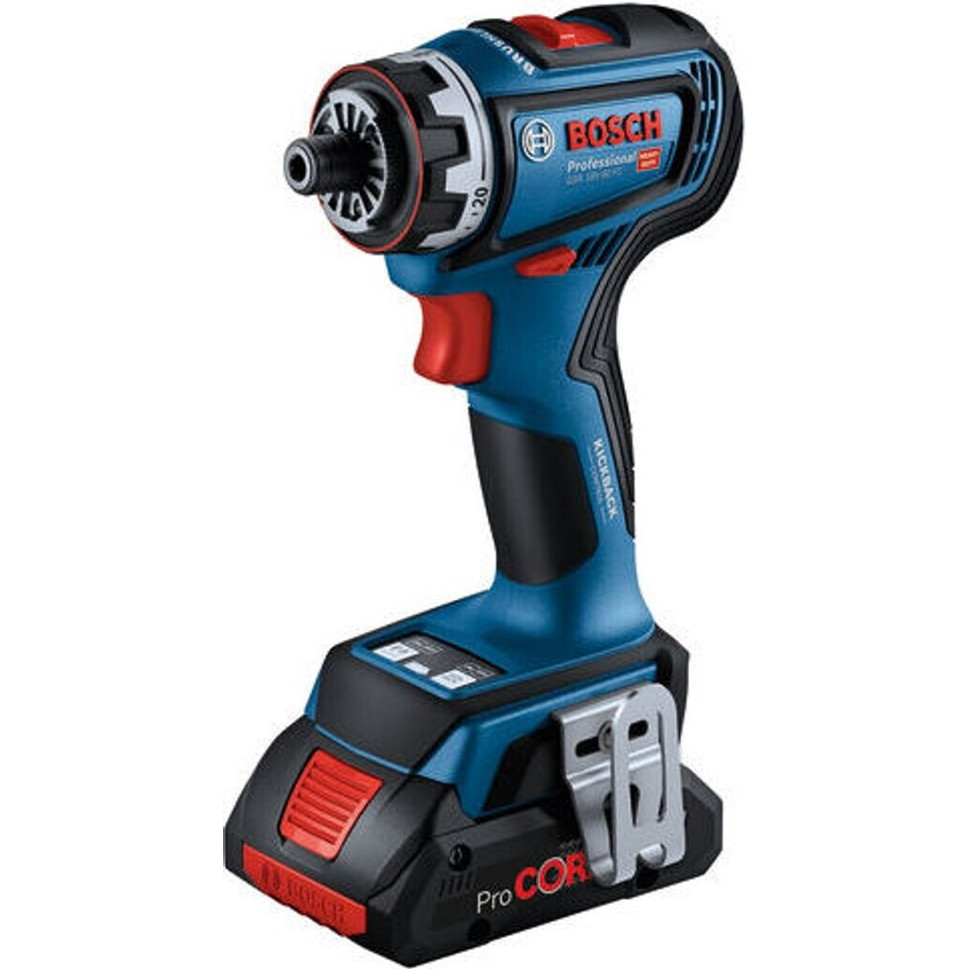 Der Bosch Professional GSR 18V-90 FC Akku-Bohrschrauber (Modellnummer 06019K6205) in einem ansprechenden Blau ist speziell für professionelle Anwender in Gewerbe und Industrie konzipiert. Dieses leistungsstarke Gerät, ausgestattet mit einem bürstenlosen EC-Motor, kombiniert Robustheit mit cleveren Features für anspruchsvolle Arbeiten.