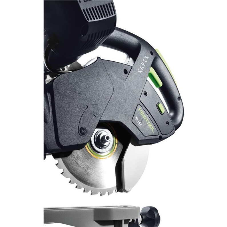 Die Festool KAPEX KS 60 E-Set ist mit einem Sägeblattschutz ausgestattet, der für erhöhte Sicherheit während des Betriebs sorgt.