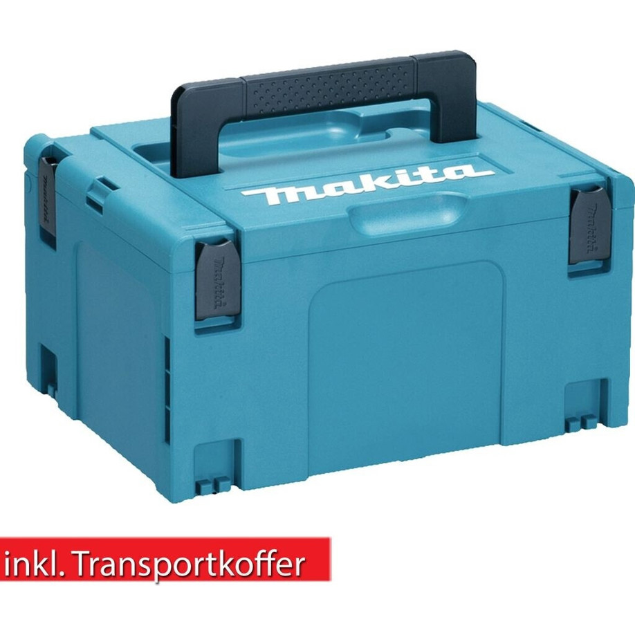 Im Lieferumfang des Makita HP001GD201 sind der Akku-Schlagbohrschrauber selbst, zwei Akkus mit je 2,5 Ah und ein Schnellladegerät sowie ein Transportkoffer enthalten.