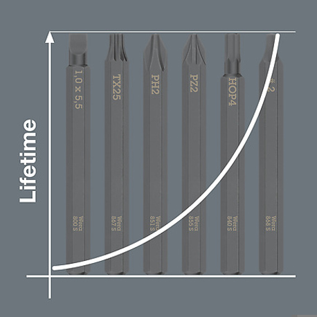 Der Schraubenziehereinsatz verfügt über einen 1/4"-Sechskant-Antrieb und ist geeignet für den Einsatz mit Wera Schlagschraubendreher 921.